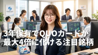 話題 ウィルグループ(6089)総合利回り4%超え!3年保有でQUOカードが最大4倍に化ける注目銘柄 この記事でわかること継続保有でQUOカードが最大2,000円相当まで増額される仕組み2027年3月から優待獲得の最低株数が100株から300株へ変更300株以上で貰えるプレミアム優待倶楽部のポイント活用方法配当利回り3.6%超と優待を合わせ... 2026.03.24 話題